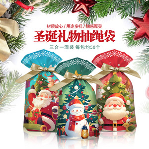 メリークリスマス巾着袋 15*23+3; 50 個/パック; 複合材料