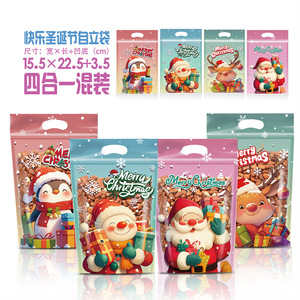 メリークリスマススタンドアップバッグ 15.5*22.5+3.5 底、50 個/パック、複合材料