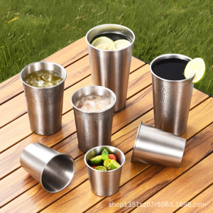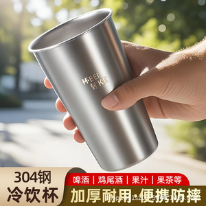 304 ステンレス鋼カップ単層水カップインビールカップ冷たいドリンクカップレストランジュースカップ落下防止カップはロゴでカスタマイズできます