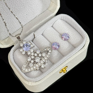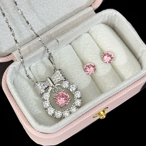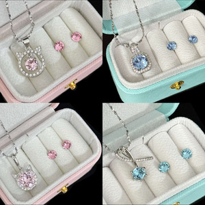 正品华子钻S925纯银项链圆钻吊坠气质设计小众锁骨链施家华子耳钉
