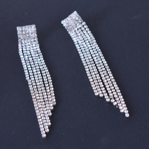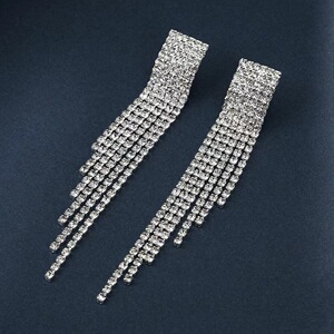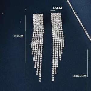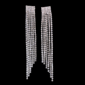 ヨーロッパとアメリカのファッショナブルでシンプルなタッセルフルダイヤモンドクローイヤリング、女性用、誇張されたロングタッセルダイヤモンドイヤリング、パーソナライズされたイヤリング