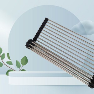 亚马逊爆款不锈钢沥水卷帘 厨房水槽折叠沥水架 水槽置物架餐具控