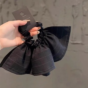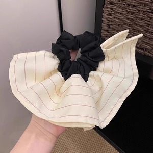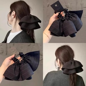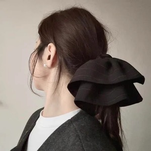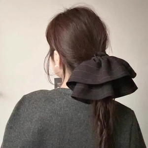 韓国風二層ストライプスカートヘアゴム、女性用、雰囲気のあるローポニーテールヘアロープ、後頭部の髪のボリュームを高めるヘアロープ