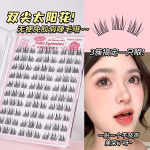 JONBOS ステムフリー接着剤不使用のつけまつげ Pure Desire ダブルチップひまわり接着剤不要セグメント化された自然な模擬まつげ