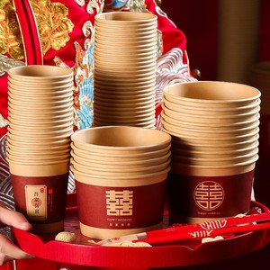 結婚式の使い捨て紙ボウルと紙コップ、厚みのある結婚式の宴会、結婚式の宴会用のボウルと食器セット、結婚式用品