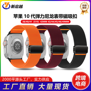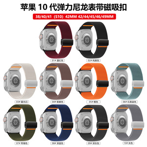 Apple 10世代の伸縮性ナイロン時計ストラップ、磁気バックル付き、耐摩耗性、長期間使用しても変形しないApple watchに適しています。