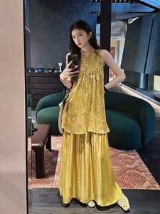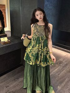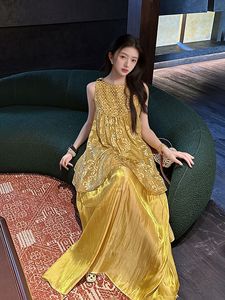 夏の中国風 2025 新しいスパンコールレーヨンドレス婦人服新中国風のハイエンドステッチ妖精スカート N6041