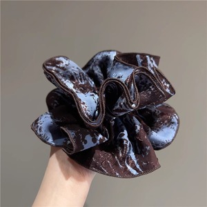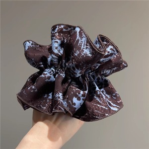 二重層プリントスリムウエストヘアゴム:ブルーコーヒー色