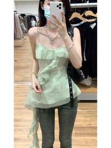 小柄な人向けの不規則なサスペンダーフリルベスト、夏の甘くてスパイシーな新しいノースリーブウエストスリムフィットサスペンダートップ