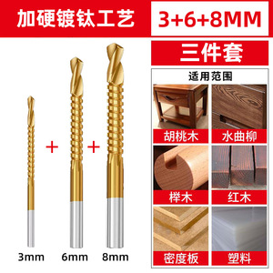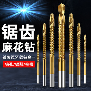 【ドロップシッピング】木工鋸歯ツイストドリルハンド電動ドリル穴あけ工具溝入れセットチタンメッキ鋸ドリルビット