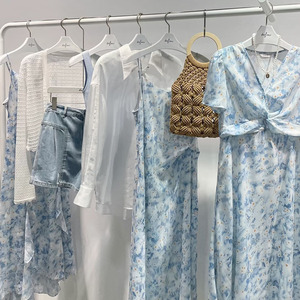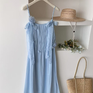 広州 13 行夏フレンチスタイルシフォンブルードレス女性の夏のハイエンドロングスカート女性の服