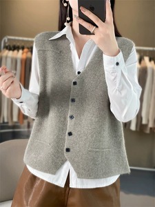ニットベストカーディガンレディースVネック2025春秋新作スーツベストボトリングシャツアウタールーズ大きいサイズチョッキ