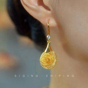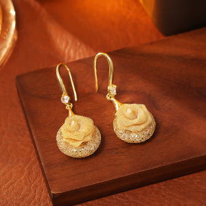 人気のゴールデンローズイヤーフック女性のための 2025 新しいニッチ新中国風のレトロな気質ライト高級スタイルイヤリング