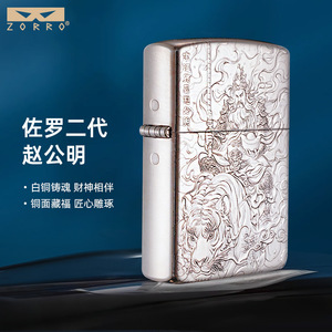 Zorro Z2-2005 白銅レリーフ 趙公明銅殻灯油防風ライター 高価値コレクション ギフト