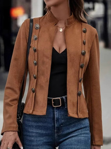 2025 ヨーロッパとアメリカのクロスボーダー無地ダブルブレスト装飾ジャケット新しい鹿革レトロ長袖ジャケット