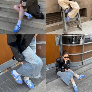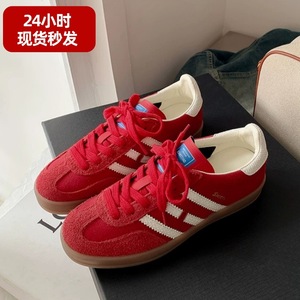 2025新款复古圆头条纹系带红色德训鞋女平底休闲运动阿甘板鞋