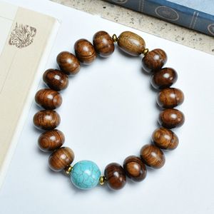 黒ローズウッドブレスレット、ローズウッドそろばん、ナツメビーズ、模造ターコイズエスニックスタイル無垢材仏珠、文具ブレスレットメーカー卸売