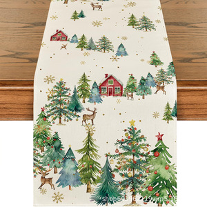 アマゾン国境を越えた新しいクリスマステーブルフラグ工場直販冬雪だるまサンタクロースプリントテーブルマット