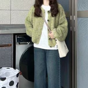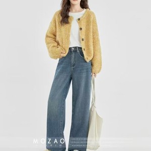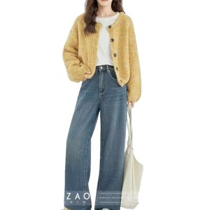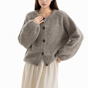 ニッチなソフトでワックスのようなスリムな秋冬の新しいルーズレイジースタイルラウンドネックニットカーディガンジャケット小柄な人向けのカジュアルトップ