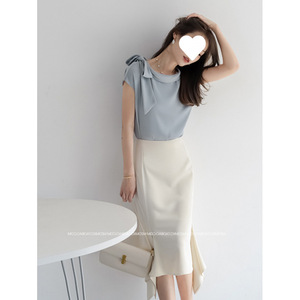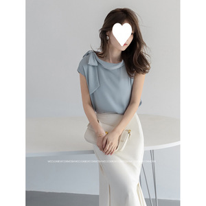 H2V フレンチ非対称蝶ネクタイ、柔らかく繊細なシルクシャツ、女性の夏の通勤知的気質マルベリーシルク裏地
