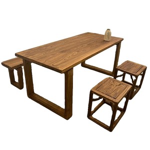 老榆木大板桌家用长方形餐桌实木长条桌风化木板大桌新中式喝茶桌