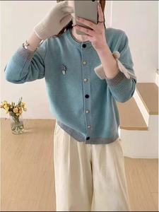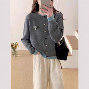 韓国ドーパミン着用雰囲気カーディガントップ女性のための春の新しいスタイルの小さな香りのシングルブレスト紫色のセーター
