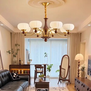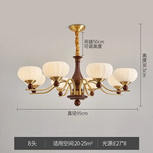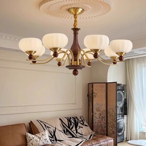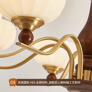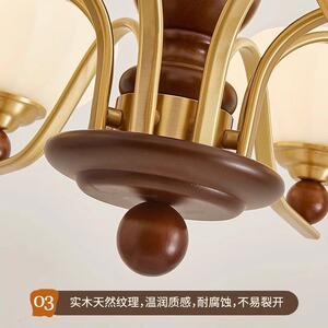 フランス中世のリビングルームランプ、メインランプ、シャンデリア、全銅製、ハイエンド、アメリカンレトロな寝室とレストランの無垢材ランプ