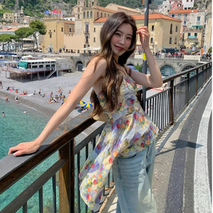 純粋な欲望スタイルの油絵プリントチューブトップ女性の夏の 2025 新デザインカジュアルウエスト痩身ノースリーブトップ