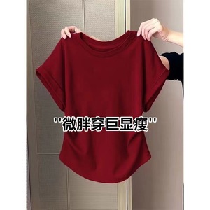 梨型プラスサイズレディース少し太ったMM半袖Tシャツレディーススリムフィットカバー多用途ニッチデザイントップ