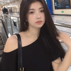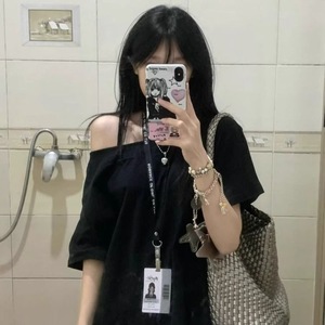 2025 ブラック Pure Desire 斜め襟オフショルダー半袖 Tシャツレディース夏ルーズカバー肉痩身甘いホットガールデザイントップ