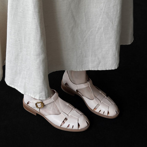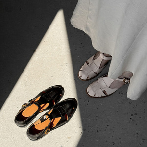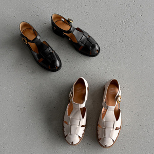 2025 夏の新スタイル手織りスペインニッチ本革つま先厚いヒールカジュアルローマピグミサンダル女性用