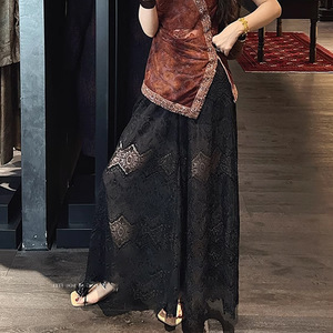 在庫あり【忘れな島】ポジショニング中空刺繍レースワイドレッグパンツ2025夏新スタイルレースカラー多用途