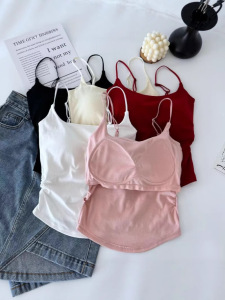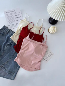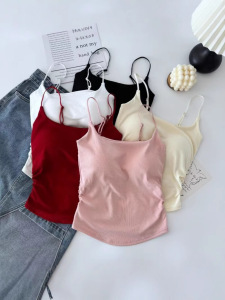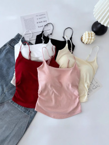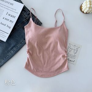 Pure Desire 甘辛プリーツキャミソール レディース インナー・アウター 胸パッド内蔵 美背中キャミソール ワンラインカラー カスタードトップ