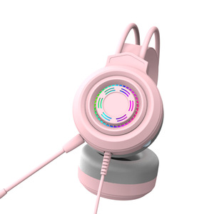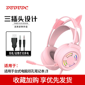 粉色猫耳耳机头戴式有线麦克风电脑台式电竞游戏直播主播专用耳麦