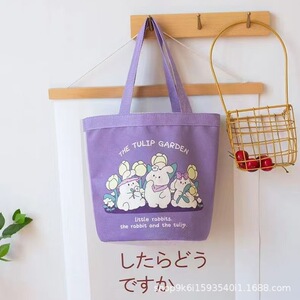 可爱卡通插画水桶包小包包女 ins风手提包帆布包圆筒包学生便当袋