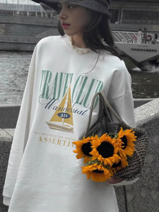 綿100% 長袖Tシャツ 春秋新作 欧米風 万能通勤 楽しいインスタイル プリント通勤トップス