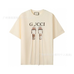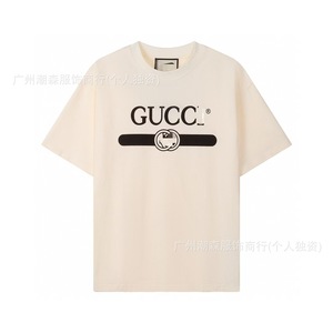 クロスボーダーのトレンディなブランド高品質 G ファミリー半袖 2025 新しいカップルスタイルの正しいバージョンのプリントパターン男性と女性の同じスタイルの T シャツ