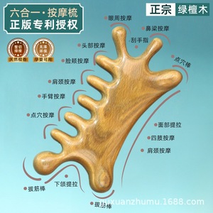 6 イン 1 特許取得済みの本物の天然緑白檀多機能マッサージコーム頭経絡コームアイメーカー卸売