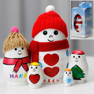 ハルビン氷雪旅行記念ロシアの木製マトリョーシカ人形クリエイティブホームデコレーションクリスマス新年バレンタインデーギフト
