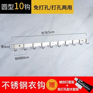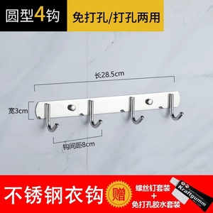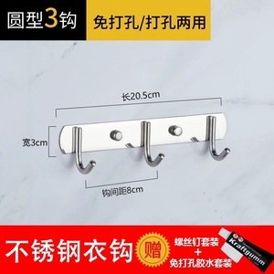 パンチフリー 304 ステンレス鋼フックコートフック粘着フックキッチンバスルームドアリアフック壁掛け収納コートラック