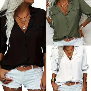 Amazon 2025 ヨーロッパとアメリカの新しい女性のシャツラペル長袖シャツ女性の黒アーミーグリーン白中東