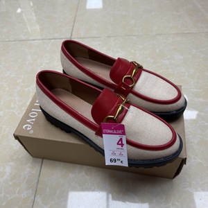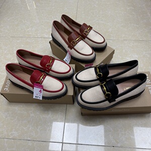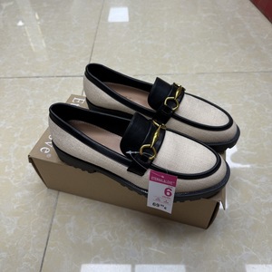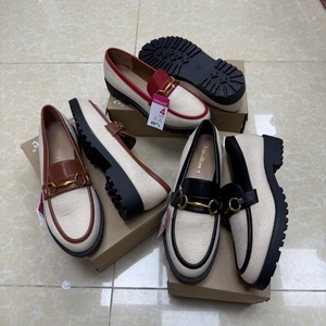 英国スタイルの女性ローファーシューズ厚いヒールカラーブロックメタルアイバックル通勤ローファー