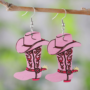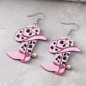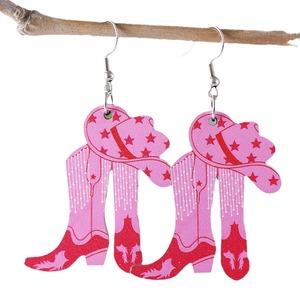 ボヘミアンウエスタンスタイルピンクヒョウ柄スタートーテムウエスタンカウボーイブーツペンダントアクリルフラットイヤリング