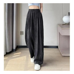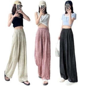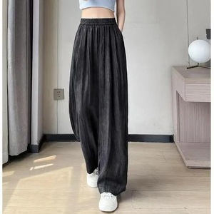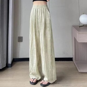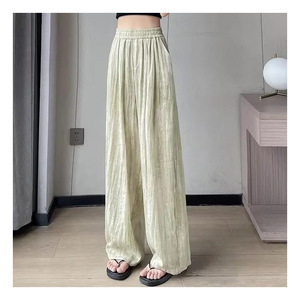 女性用クールワイドレッグパンツ、夏のタイダイ山本テンセルリネンドレープハイウエストカジュアル多用途ドレープフロアモップパンツ
