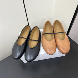 高端小众设计复古擦色芭蕾风奶奶鞋女新款真皮平底一字带时尚单鞋