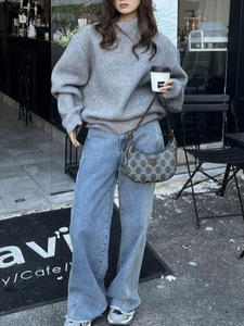 秋と冬の軽い大人スタイルの新しいグレーのニットセーター女性のための韓国の怠惰なスタイルのルーズニッチタートルネックプルオーバーセーター