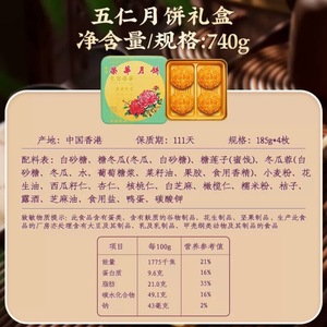 香港輸入 元朗栄華五仁金華ハム月餅 中秋節カスタードダブルイエローエッグホワイトロータスペースト