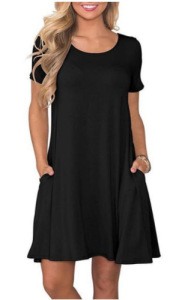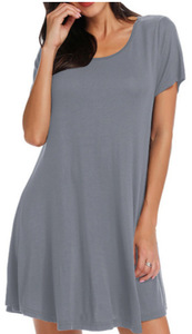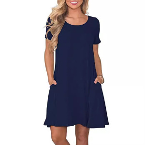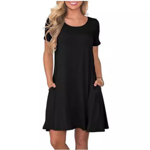 2025 ヨーロッパとアメリカの貿易クロスボーダー新しいアマゾンラウンドネック無地カジュアルポケット半袖大裾ドレス婦人服