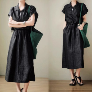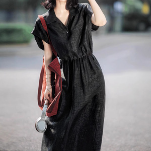 Daxi Z制|Xiangyunshaシンプルライン|気質着痩せワンピース2025亀裂フェイクツーピースロングスカート