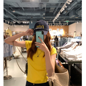 YIDENG 2025 夏の新デザイン韓国スタイル右肩多用途シンプルなラウンドネックスリムフィット半袖